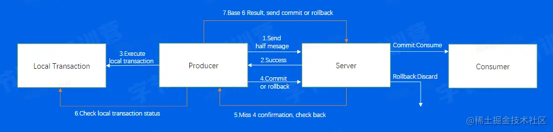 因此RocketMQ提供事务消息来保证类似的场景,我们来看看其原理是怎么样的