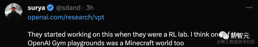 而对于 OpenAI 来说,其实早在 2022 年的时候就提出了一种全新的 VPT「视频预训练模型」,能够让 AI 学会了在「我的世界」里从头开始造石镐。