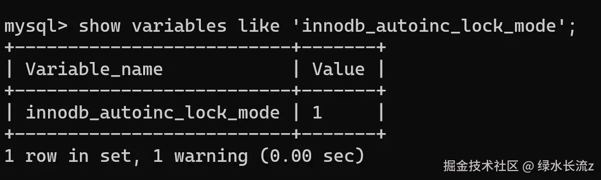 show variables like 'innodb_autoinc_lock_mode';