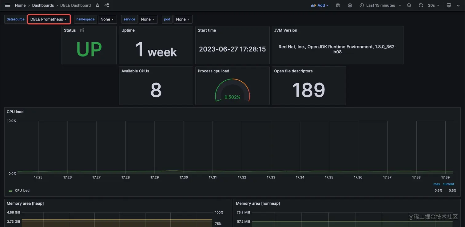 本篇文章将采用 Docker 方式搭建 Grafana + Prometheus 实现对 DBLE 的 JVM 相关指标(如:CPU、Memory Pool、GC、Thread)的监控系统。