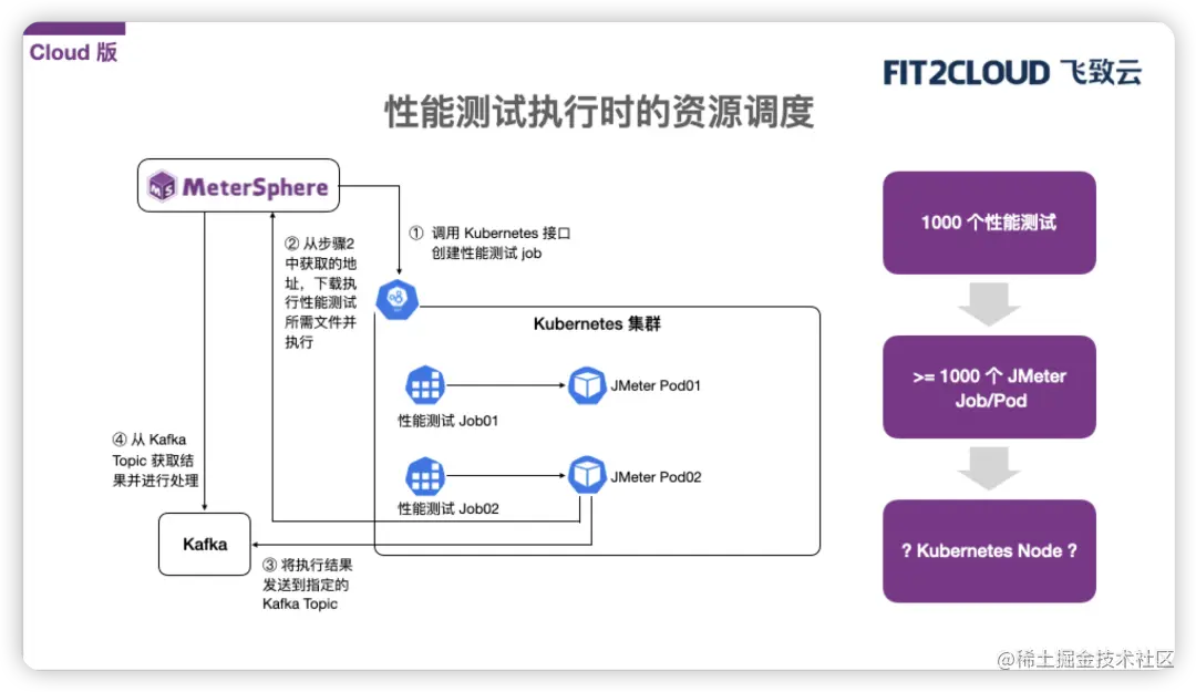 大家都知道跑性能测试其实是比较耗费资源的,使用MeterSphere去跑性能测试的时候,Cloud版本都是使用Kubernetes集群来跑性能测试,MeterSphere就会调用Kubernetes的接口去创建出对应的性能测试的Job。在这背后,可能是一个或者多个JMeter的Pod来执行的脚本。