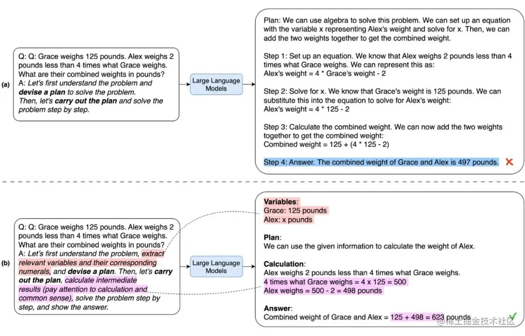 这个"游戏"不仅帮助我们理解 LLM,它也是提升 LLM 能力的途径。有效的提示工程可以提高大语言模型处理复杂问题的能力(比如一些数学推理问题),也可以提高大语言模型的扩展性(比如可以结合专业领域的知识和外部工具,来提升 LLM 的能力)。
