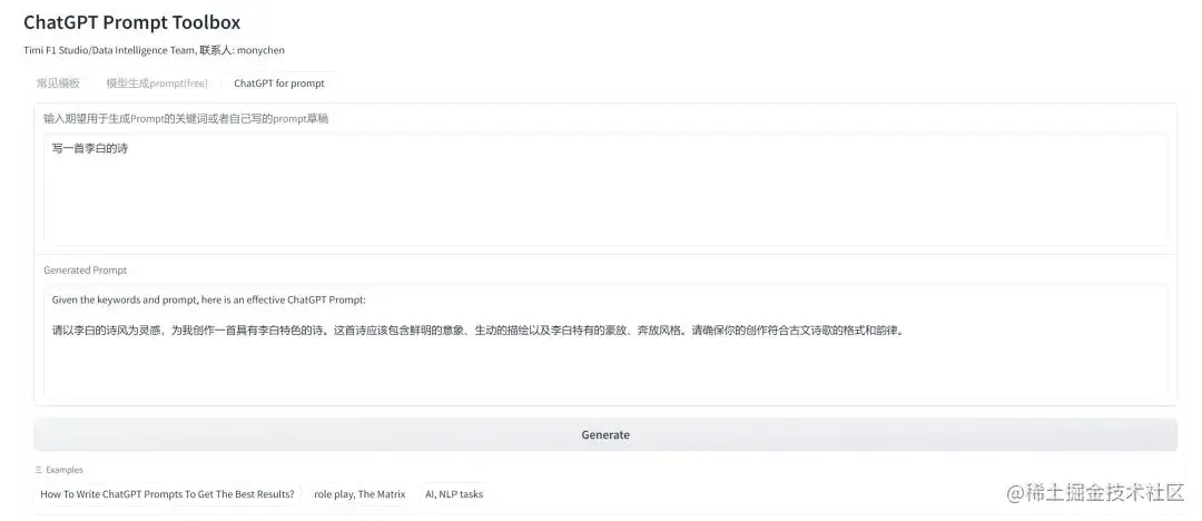 当然,经过前面那么多提示工程的介绍,大家也可以思考一下,如何用一个提示工程来帮助自己写提示工程,下面是笔者之前做的一个工具,感兴趣的也可以试试用 chatgpt 来优化自己的 prompt,提示词的效果肉眼可见提升。