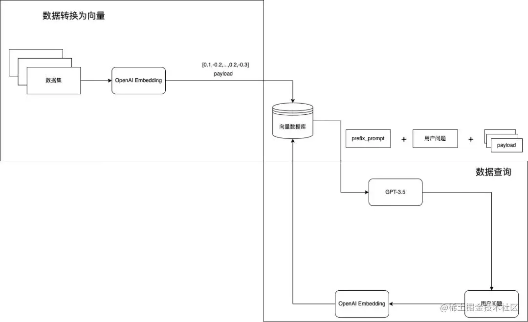 对于用户提问转为 embedding,然后去数据库查相关的信息