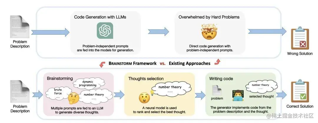 - 代码生成:基于问题和选择出来的最佳思路进行代码生成