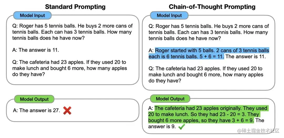 思维链的思想其实很简单,就是给 LLM 通提供一些思考的中间过程,可以是用户提供,也可以让模型自己来思考。