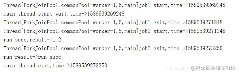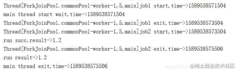 System.out.println(Thread.currentThread()+"job2 exit,time->"+System.currentTimeMillis());