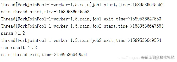 System.out.println(Thread.currentThread()+"job1 exit,time->"+System.currentTimeMillis());