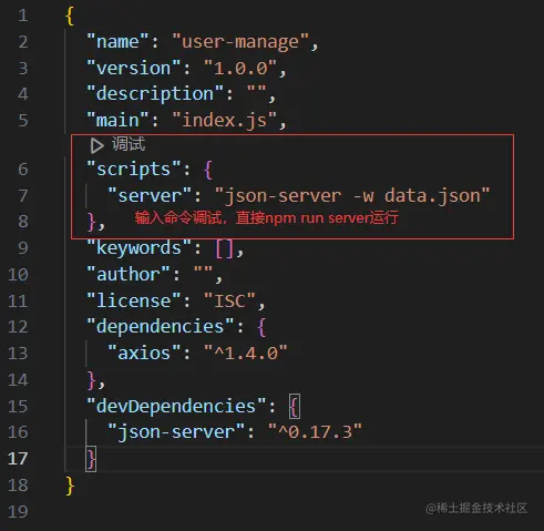 - 修改package.json中scripts下serve属性为json-server -w data.json