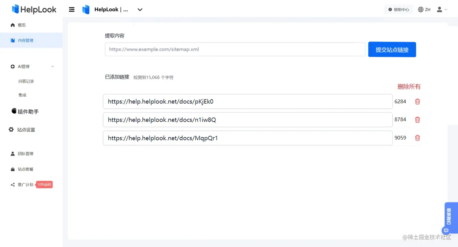 HelpLook作为一个专业网站搭建工具,最近嵌入了网站智能问答的功能。用户只需要把原来企业知识库的url复制到HelpLook的后台中,即可自动导入网站中的资料。具体操作如下: