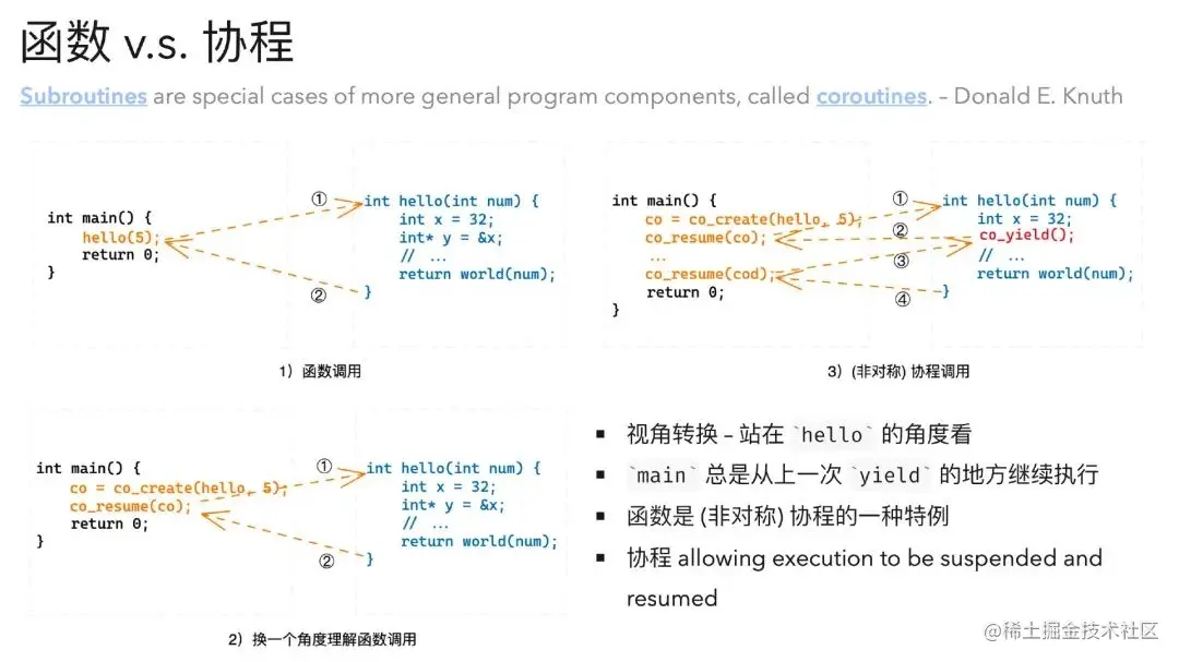 理解这一点,我们对于各种协程的分类,如对称/非对称协程、有栈与无栈协程,就能够更加明白其本质,而无需在实现细节上过于纠结。