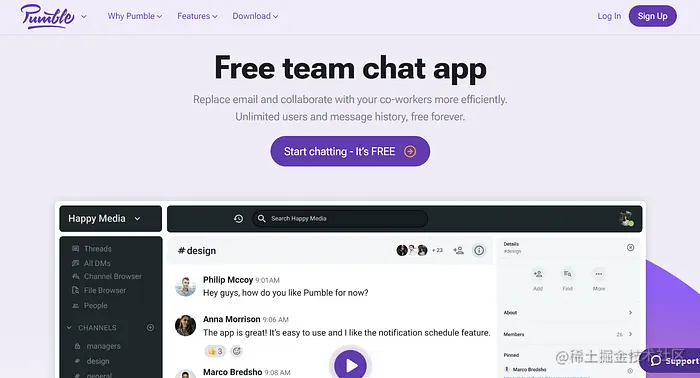 Pumble 是一款专为开发人员设计的通信工具。可有有效改善团队沟通,轻松共享代码片段和文件,在一个地方跟踪任务