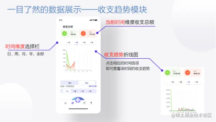 - 支持多种登录方式+一眼就能清晰了解收支数据的数据展示页。