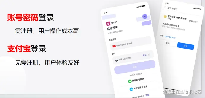 在原本账号登录的基础上,增添微信登录与支付宝登录。账号登录需要用户进行注册,微信与支付宝登录无需注册。
