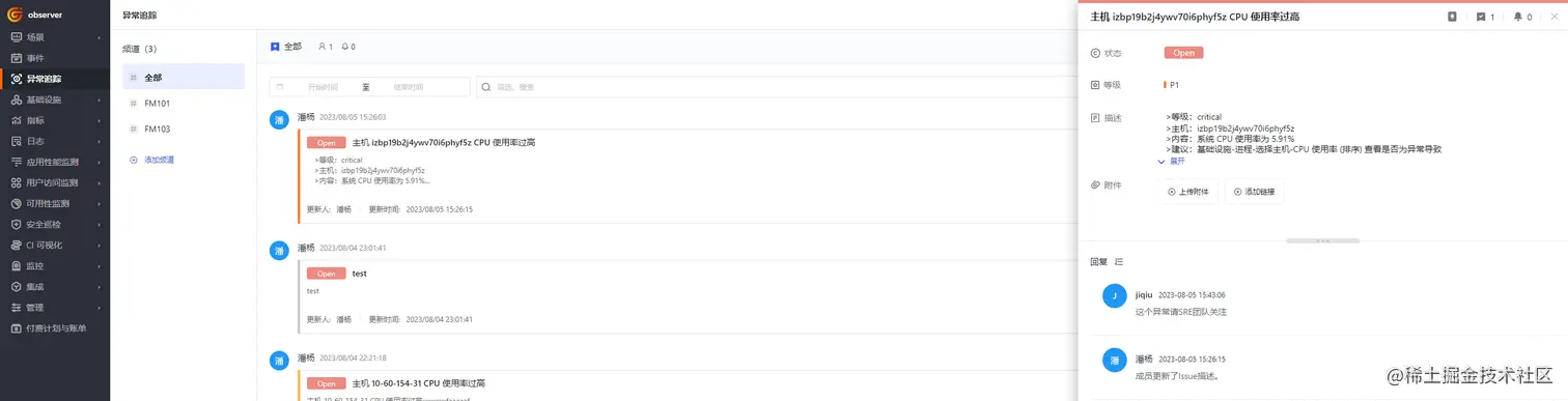 通过飞书机器人的方式可以更加便捷的对异常追踪中的 Issue 来进行管理,从而提升我们针对与异常的处理效率和协作效率。