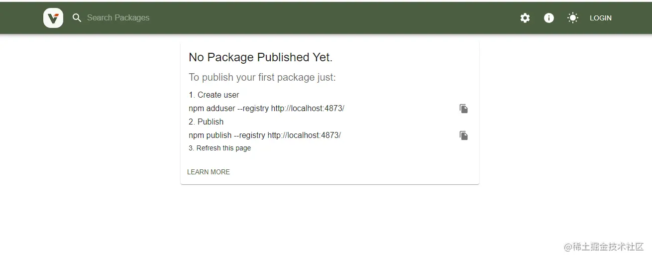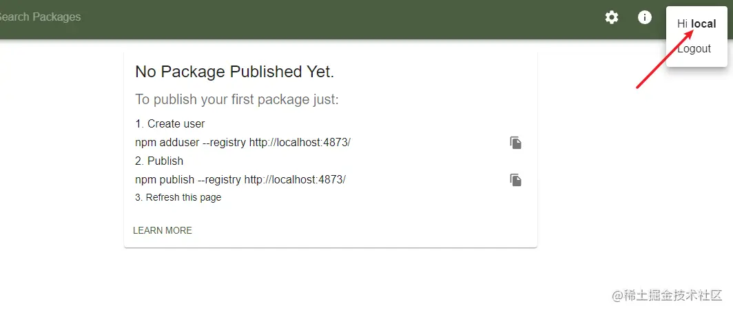 在浏览器中访问 http://localhost:4873/,可以看到一个图形化管理界面