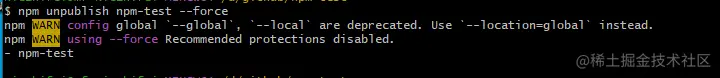 npm unpublish npm-test --force 删除组件