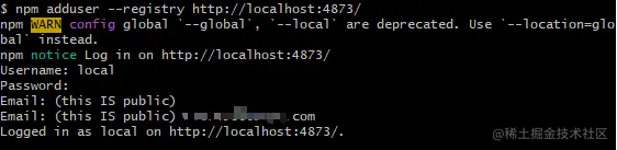 npm adduser --registry http://ip地址:4873/