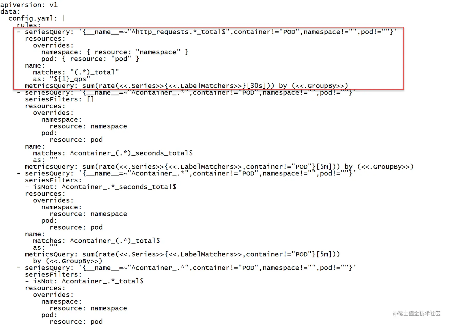 prometheus-adapter不能动态加载配置,需要kubectl delete pod prometheus-adapter-xx,让Pod重启加载最新配置。