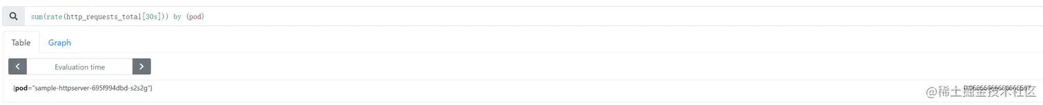 使用PromQL查询:sum(rate(http_requests_total[30s])) by (pod)