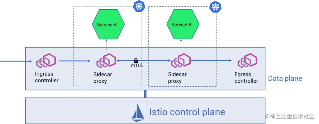 Istio是最受欢迎的、经过CNCF认证的开源服务网格软件。它使用Envoy代理作为sidecar,而控制平面用于管理和配置这些代理。