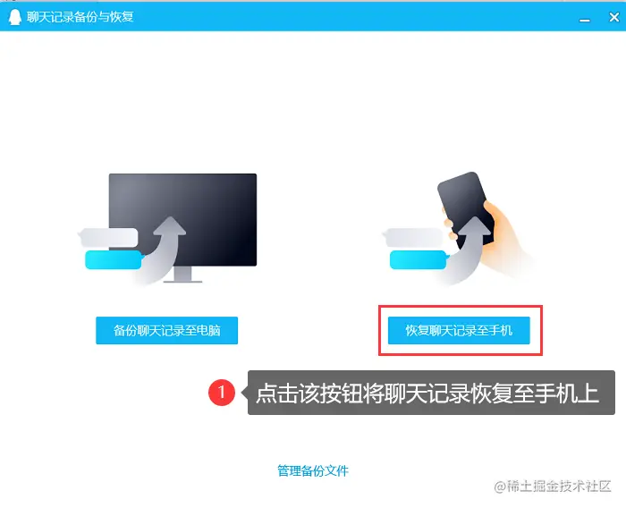 步骤2:在弹出页面中选择【恢复聊天记录至手机】,后续根据提示选择需要恢复的聊天对象就可以找回之前的聊天记录了。