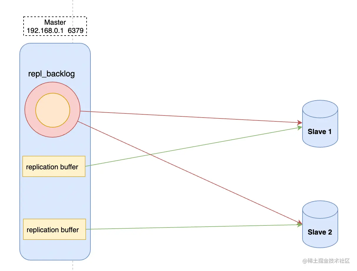 需要注意的是,repl_backlog_buffer 并不是如图中显示的貌似无限队列的模式,而是一个类似环形数组,如果数组内容满了,就会从头开始覆盖前面的内容,因为给到的内存空间是有限的。