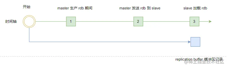 replication buffer 缓冲区创建在 master 主库上,存放的数据是下面三个时间内 master 数据的所有写操作。