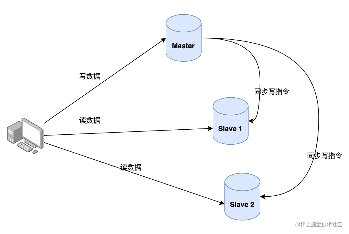 写操作:只在主库上写数据,写完之后将写操作指令同步到从库。