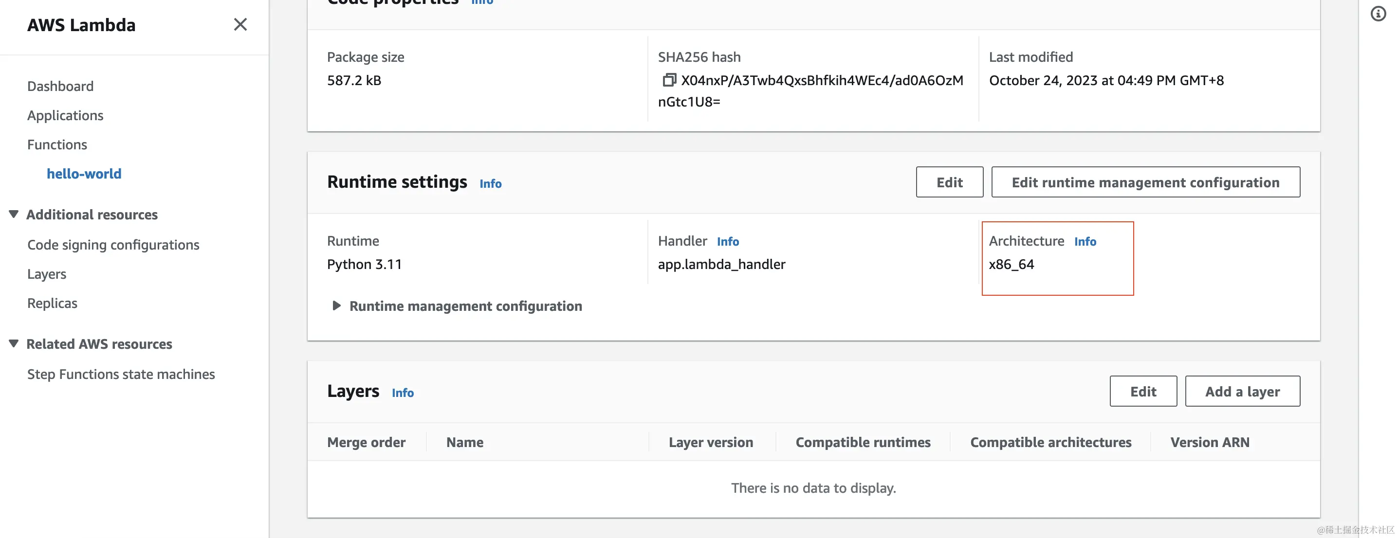 关于AWS Lambda的执行环境请看:Lambda runtimes,里面梳理了详细的OS环境,支持的语言,支持的CPU架构和支持周期等信息。