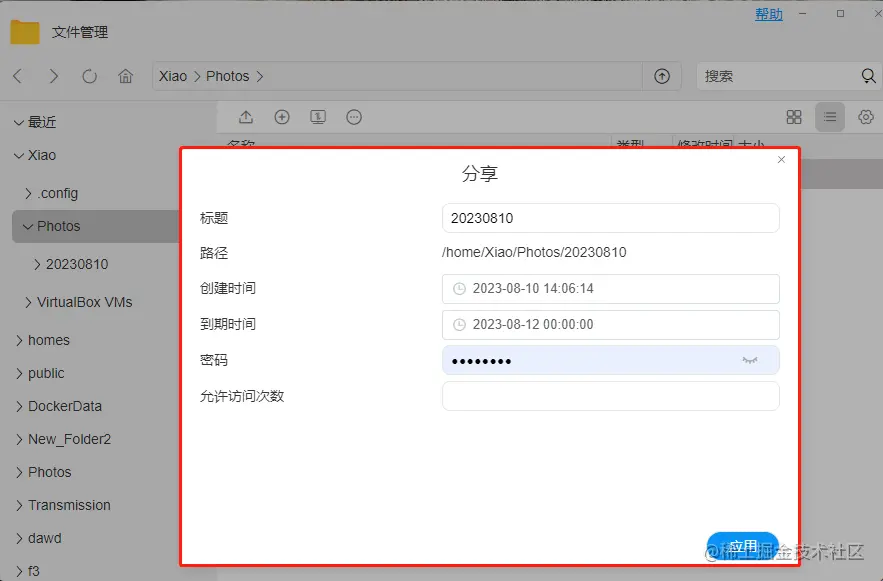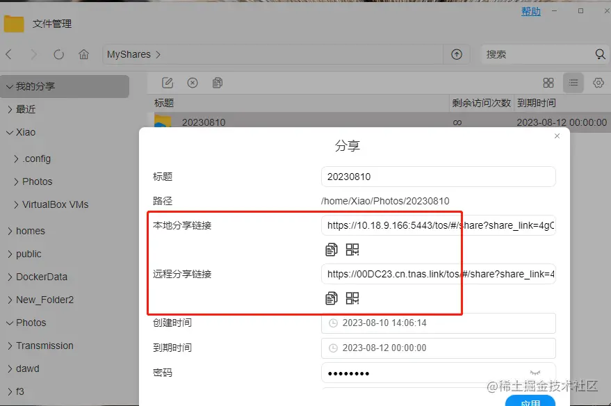 另外,我们在度假的时候照片肯定少不了和朋友家人分享,但一张张传阅既浪费时间又占用内存,不如使用铁威马的文件分享功能,可以设置分享到期时间、访问次数、密码;