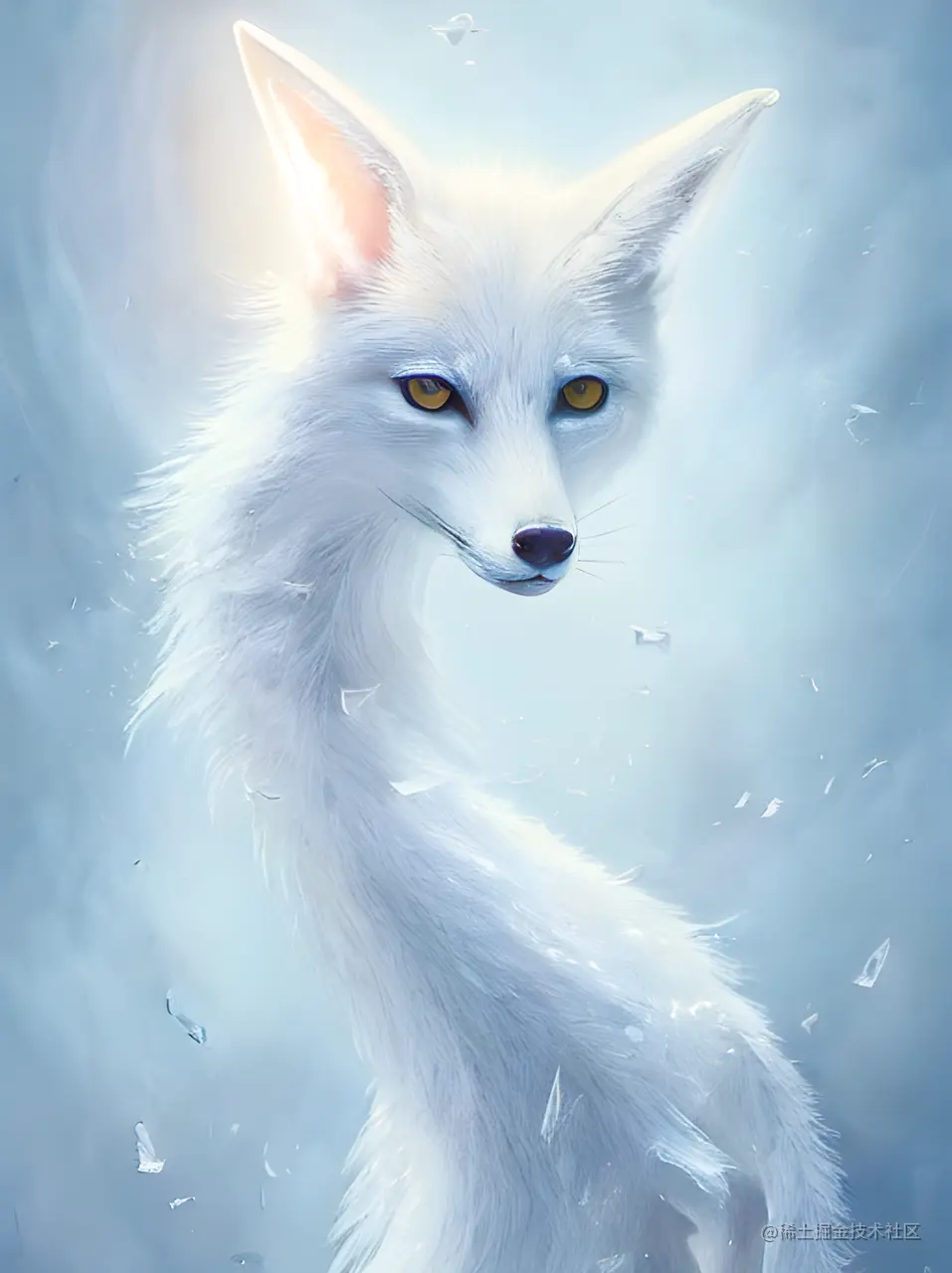 - Prompt: 完整而精致的白色九尾狐肖像,美丽,高贵,敏捷,仙女,神话,传说,详细,artstation上的趋势,灯光效果,kilian eng,john harris,bastien lecouffe - deharme的,高度详细