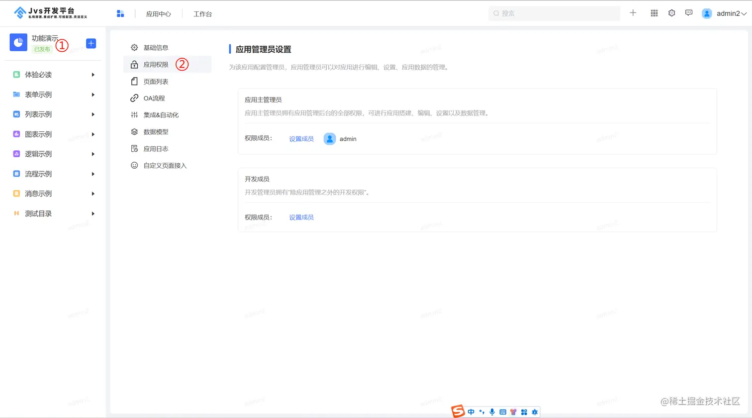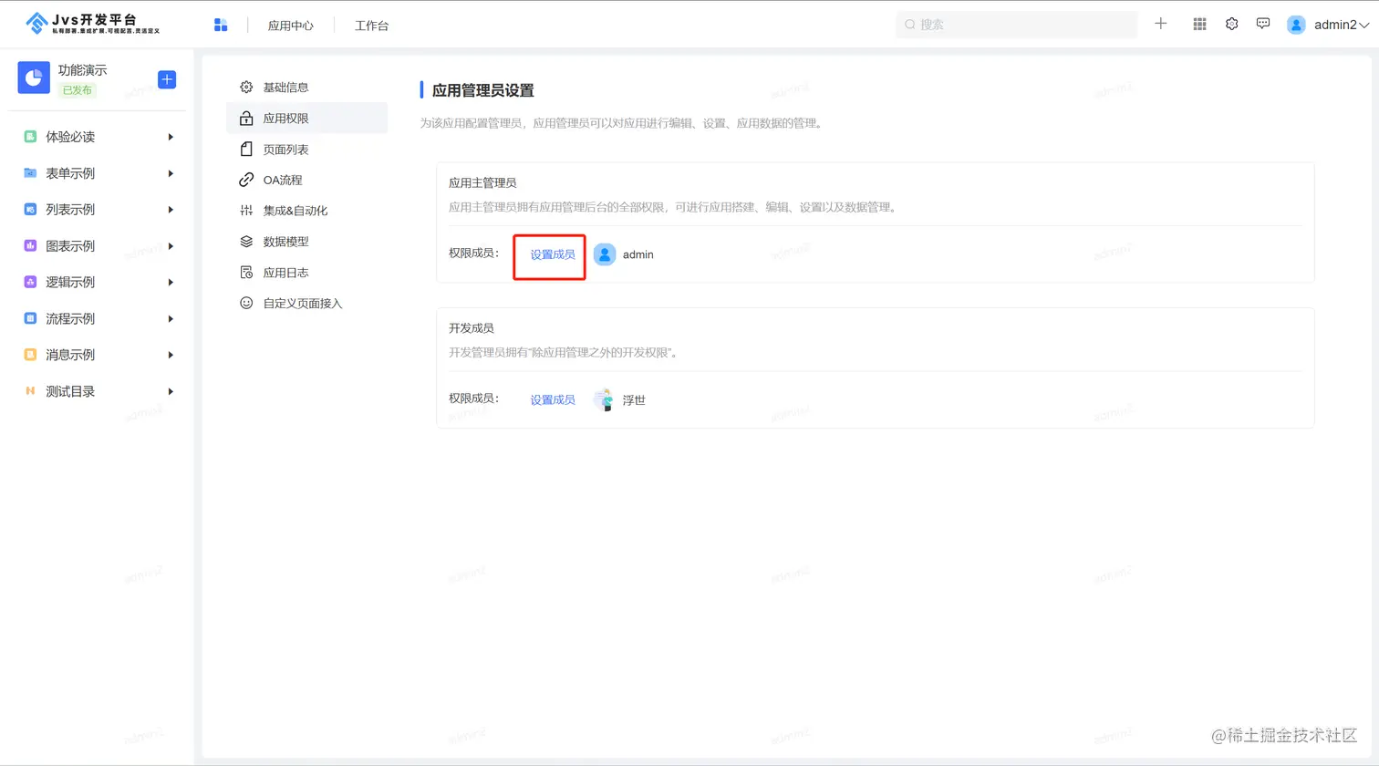 应用管理员有两类:应用主管与开发成员,应用主管授权后,用户可以对本应用进行配置编辑、发布;应用开发成本是授权后,可以在应用中心查看到此应用,可以对应用的卸载,发布到模板中心等操作,如下图所示