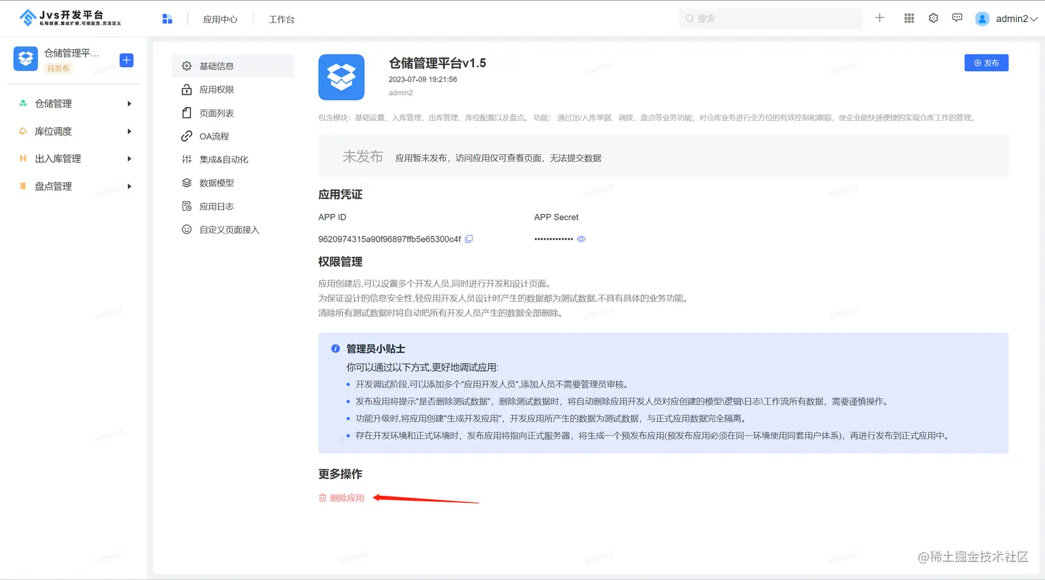 ④:应用的操作,对应用的发布与卸载,在待发布状态下,才可以删除应用