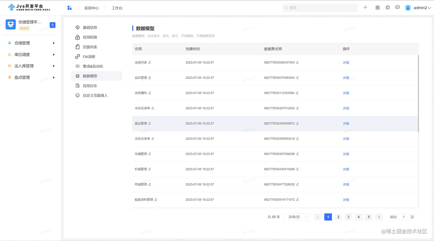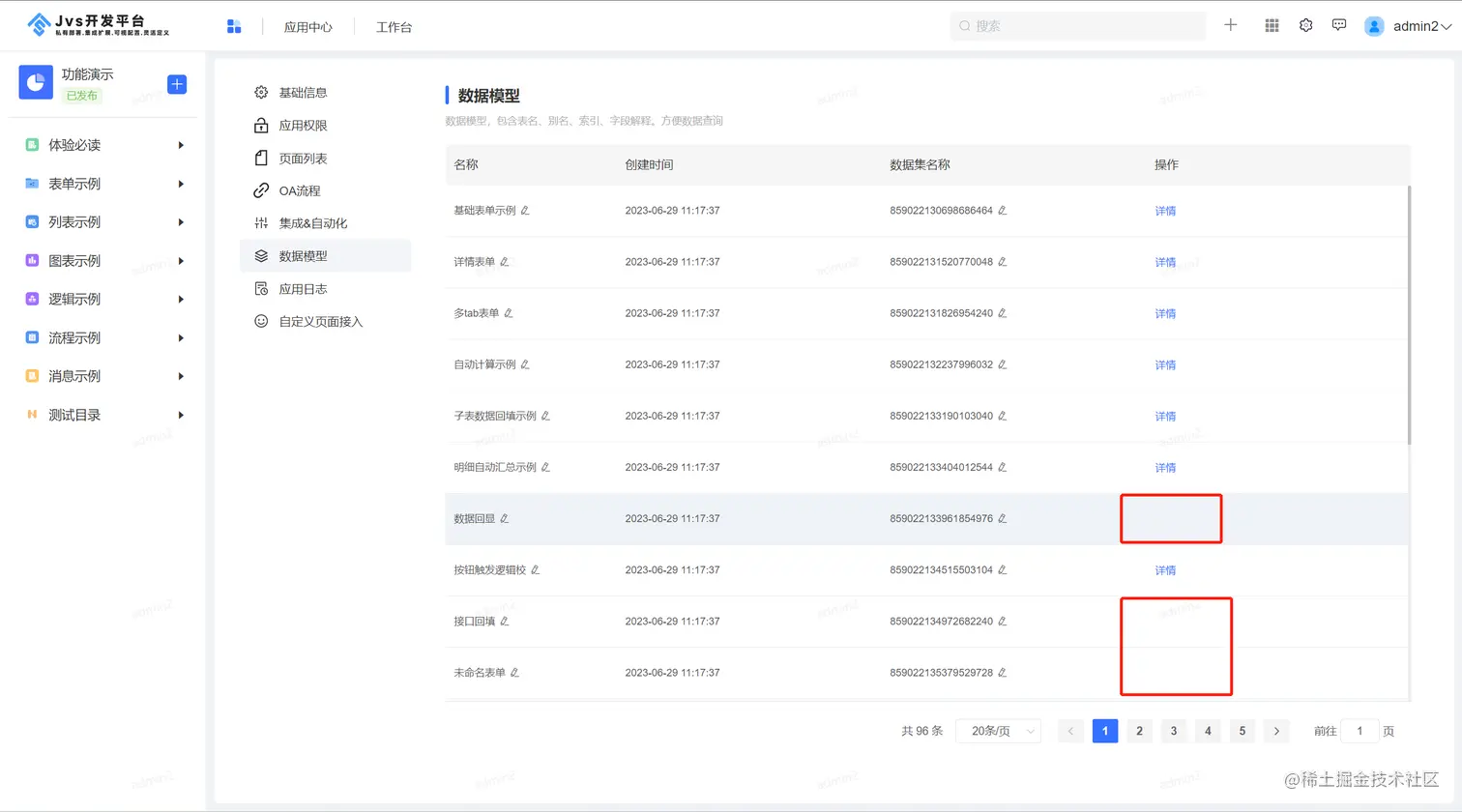 备注:模型中如果没有字段的,系统将不展示详情按钮,如下图所示
