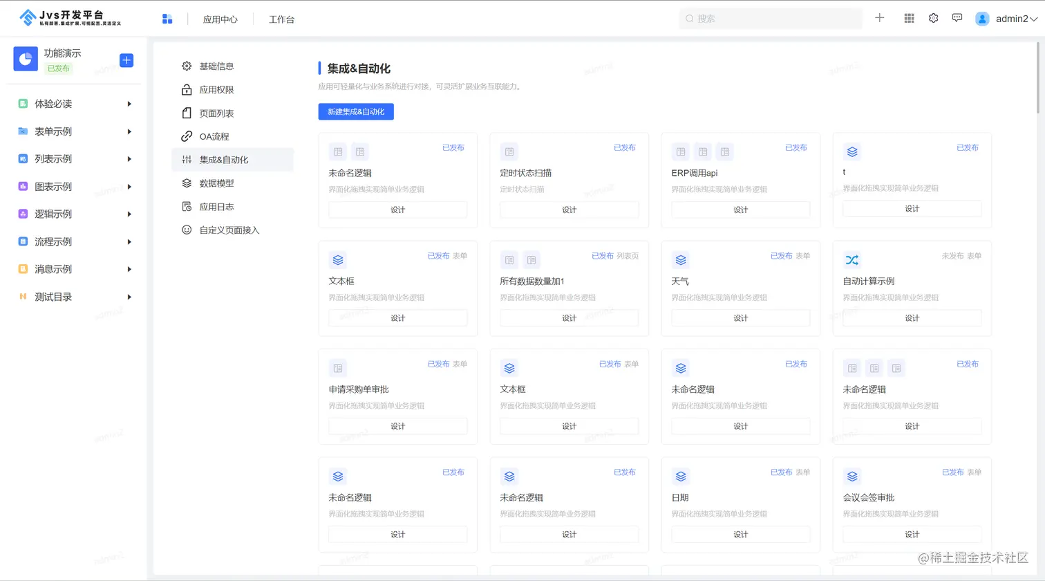 点击集成自动化列表页,系统展示了本应用中所有经过编排的可执行逻辑
