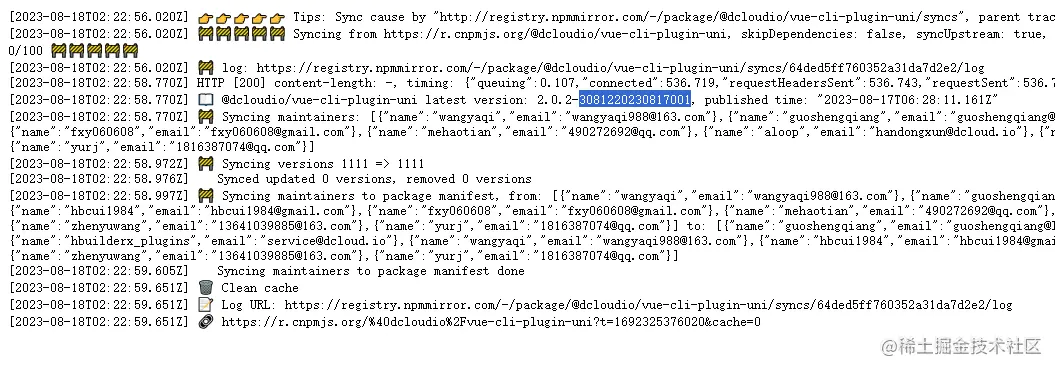 于是我到 npm 核实了一下,这个包的2.0.2-3081220230817001版本实际上是存在的。