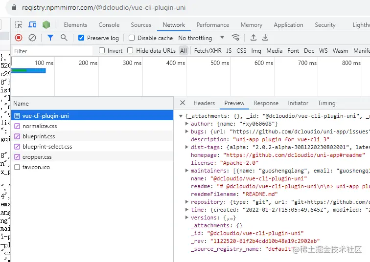 debug 后发现 npm 找不到其中一个包@dcloudio/vue-cli-plugin-uni的最新版本: