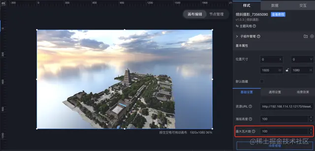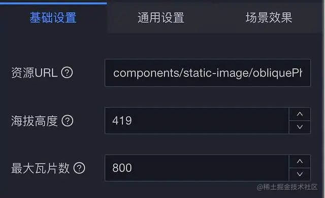 在倾斜摄影组件的基础设置中,通过调整海拔高度与最大瓦片数两个配置项,可保证倾斜摄影数据在组件中完整加载。