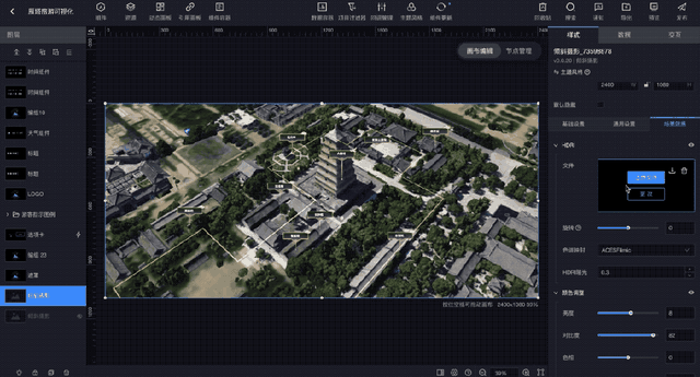 **3、3D与2D联动交互:**EasyV倾斜摄影组件不仅能实现高精度的三维建模,还可以与常规的2D组件进行联动,实现3D场景与2D看板的交互。这种交互性能使用户能够更深入地探索数据,同时将三维信息与其他业务数据相结合,为决策提供更全面的支持。