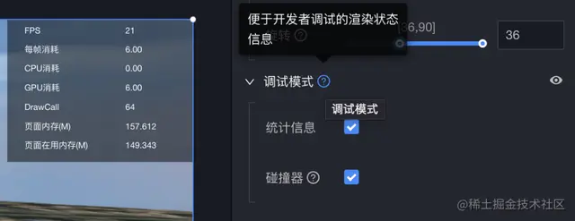 调试模式:便于开发者调试的渲染状态信息