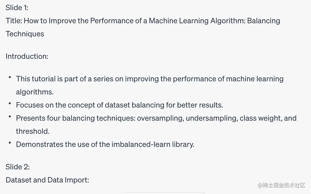 请记住,提供清晰有序的文本可以获得最佳结果。借助ChatGPT和几行Python代码,您可以用令人惊叹的演示文稿吸引其他人!