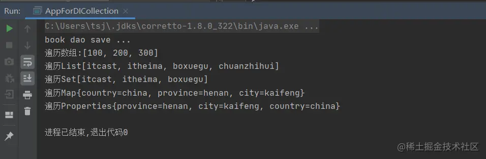 (3)编写AppForDICollection运行类,加载Spring的IOC容器,并从中获取对应的bean对象