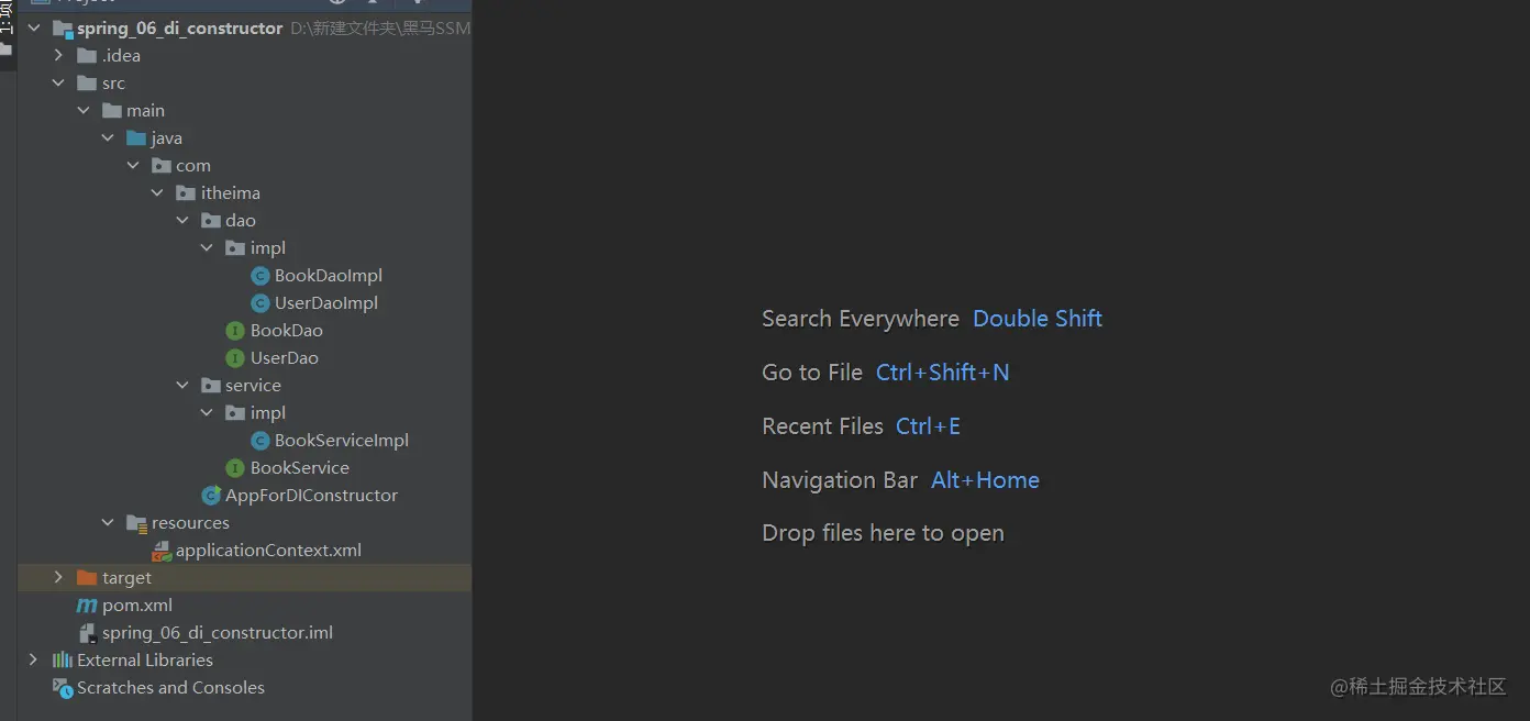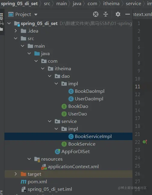(3)编写AppForDISet运行类,加载Spring的IOC容器,并从中获取对应的bean对象