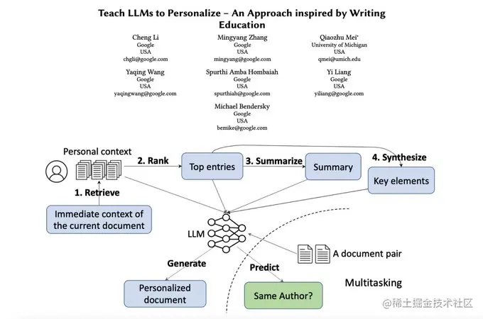 这篇论文探讨了如何让 LLM 在生成文本时实现个性化,突破了现有方法的限制,提出了一种通用方法,使 LLM 能够生成个性化文本,无需预先定义属性。论文中介绍了多任务学习和多阶段框架的应用,强调了人类任务完成方式对 LLM 的启发,以及组件如检索器在超越基本文本生成方面的关键作用。