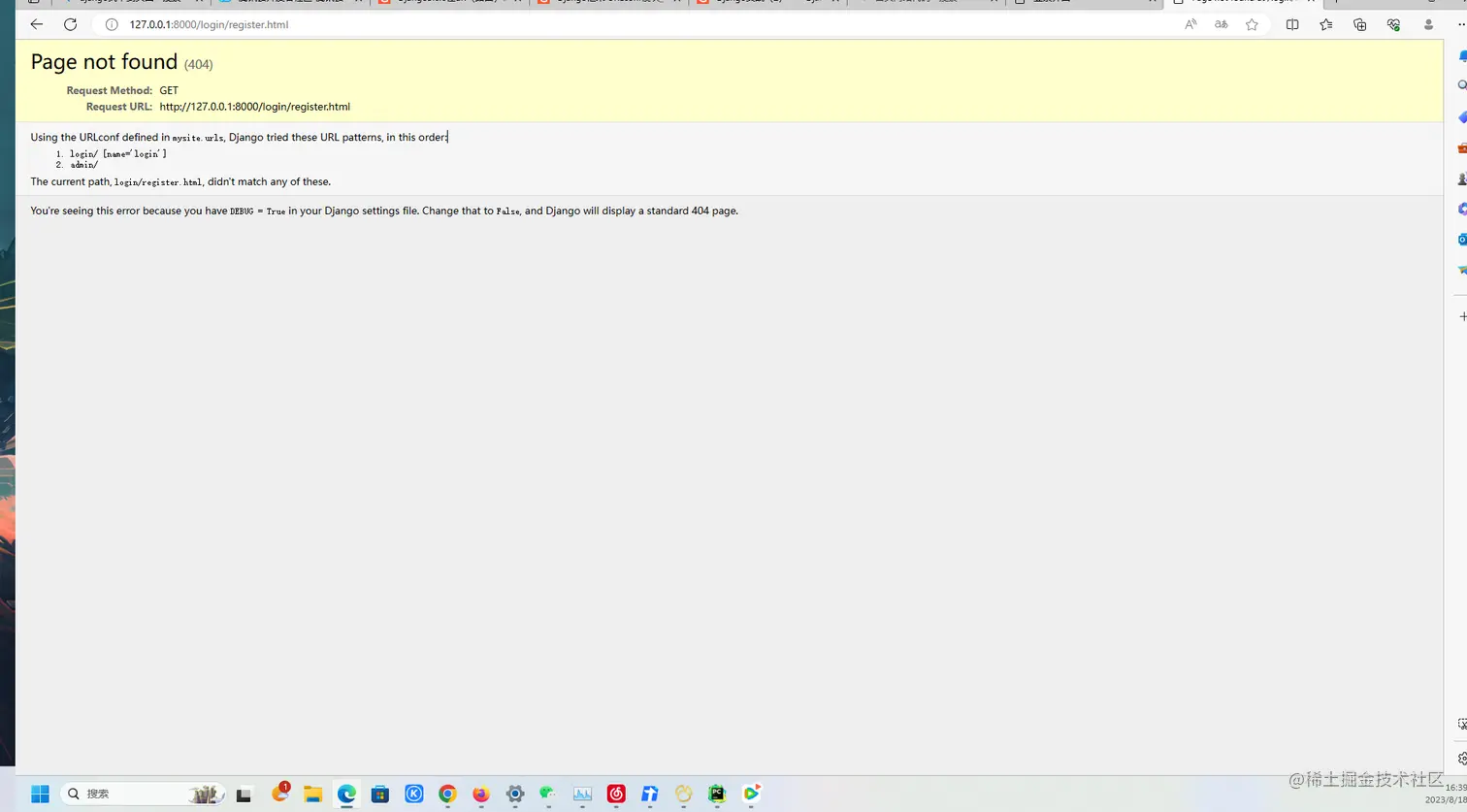 django:找不到界面? 用户1379820343331 2023-08-18 70 阅读1分钟 主路由urls: 添加描述 子路由urls: 添加描述 服务运行访问路由:127.0.0.1:8000/login,在这个页面点击注册,他跳转的路由是127.0.0.1:8000/login/register.html,这样就使django报错找不到页面: 添加描述 想问一下各位大佬,应该如何更改路由才能跳转正确,自学的python有很多不懂。