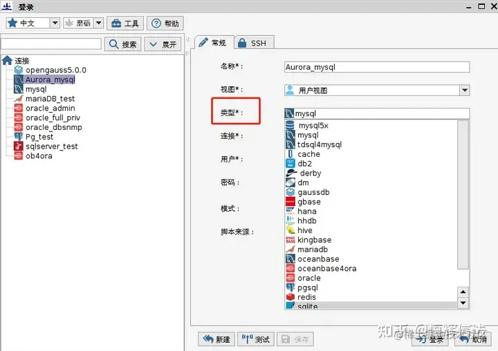 点击“登陆”,即可连接相应的数据库;