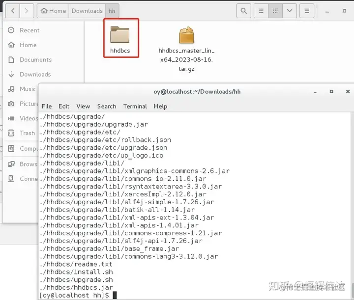 进入下载目录,对HHDBCS压缩包进行解压;