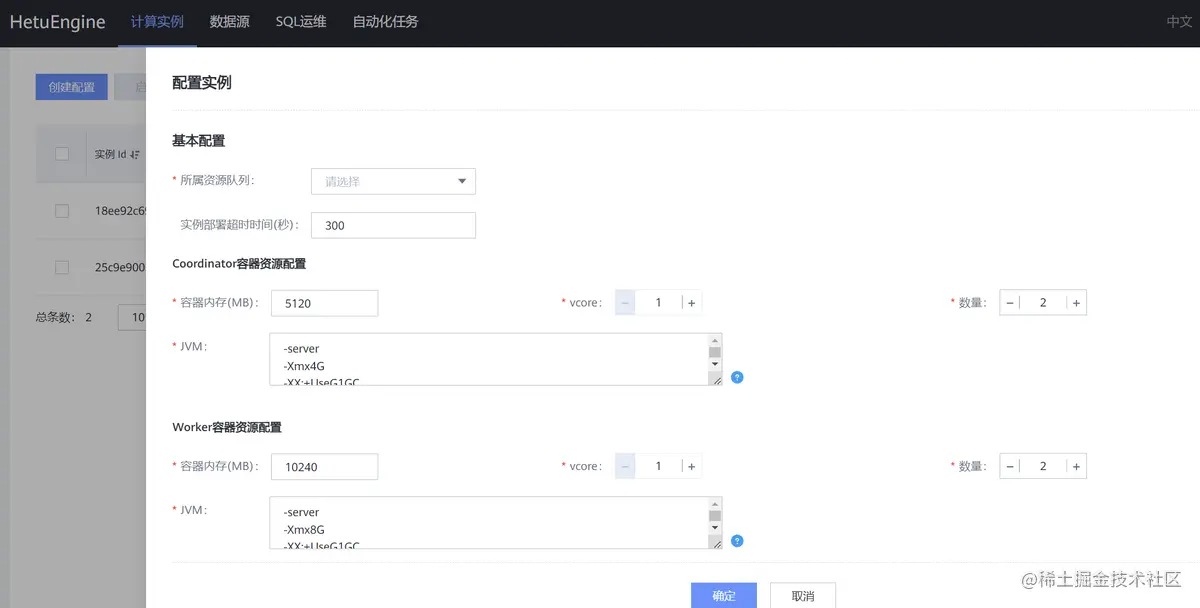 HetuEngine支持在HSConsole界面对计算实例进行管理,并且能够对每个计算实例进行差异化配置,如下图所示