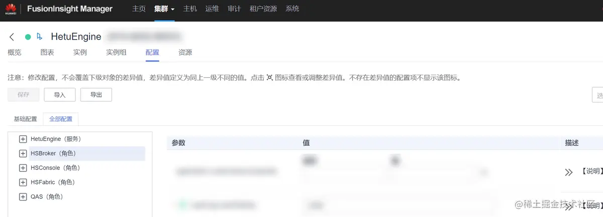 可以通过HetuEngine服务层配置对实例参数进行调整,如下图所示。
